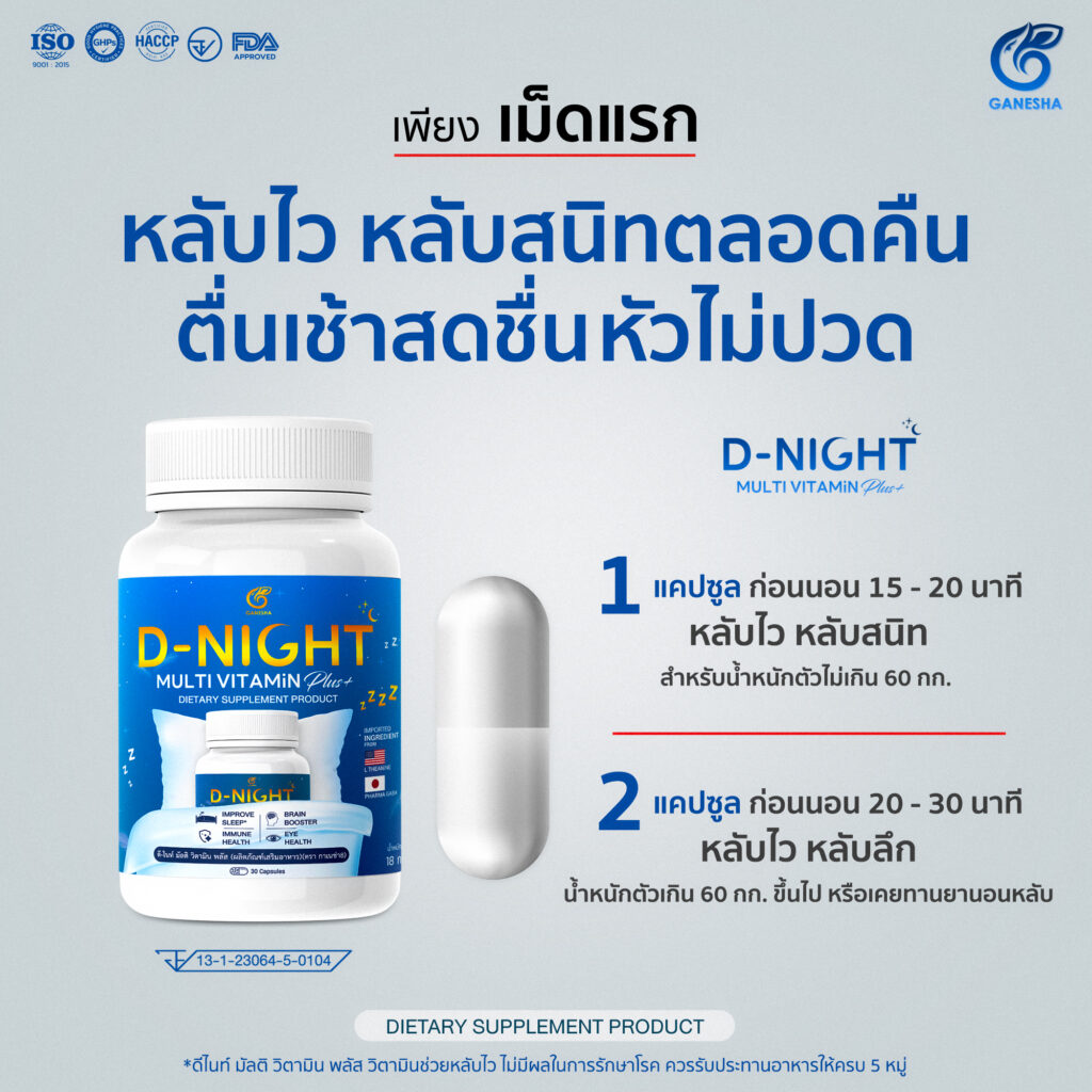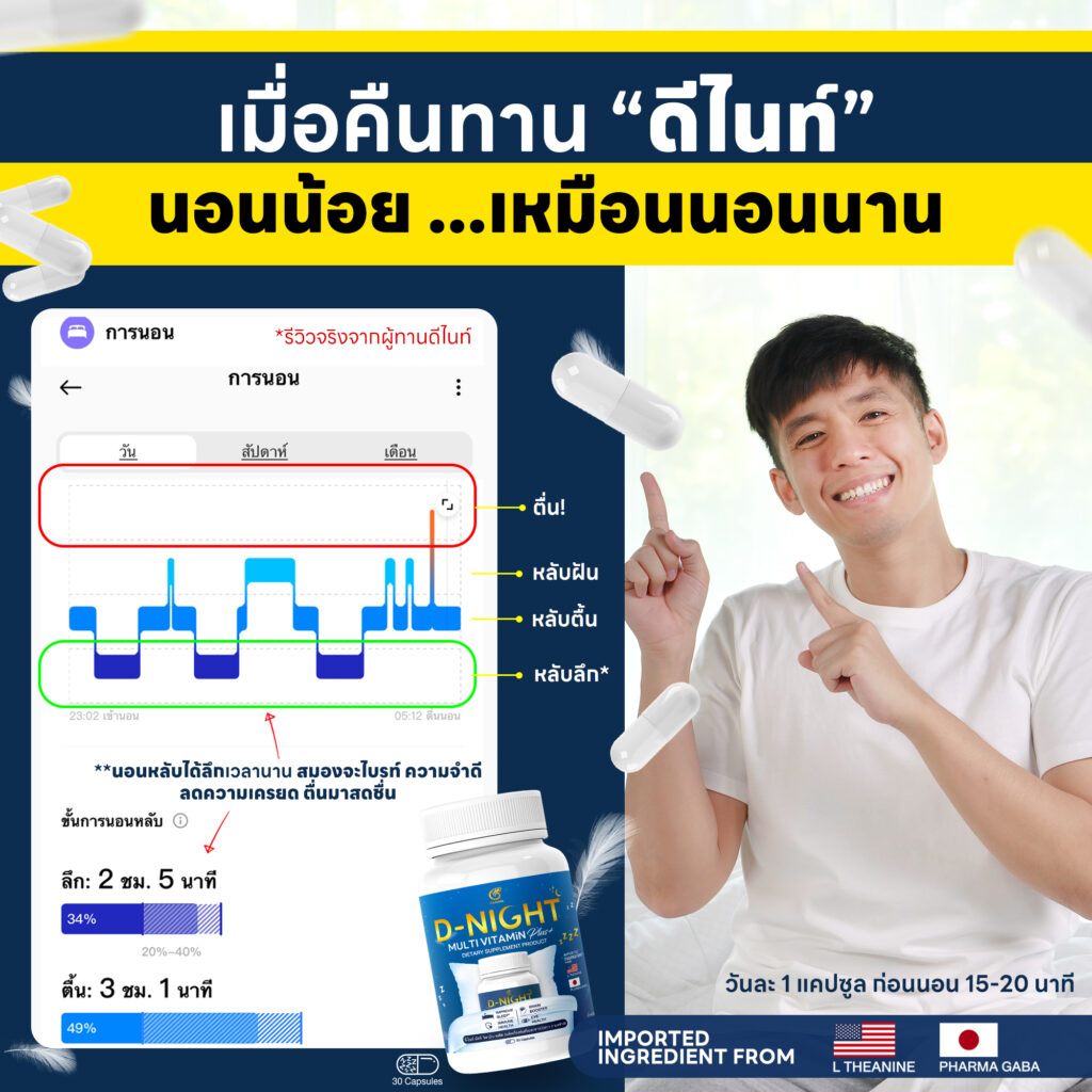 ดีไนท์ วิตามินช่วยหลับ ไม่ตื่นกลางดึก ตื่นเช้าสดชื่นไม่ปวดหัว